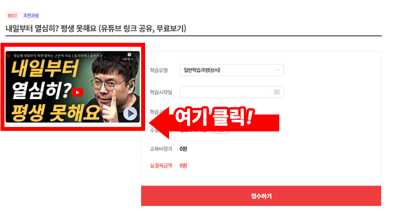 해당 강의의 메인 페이지 썸네일 부분을 클릭하면 각 과정마다 맛보기 강의가 제공되고 있습니다.